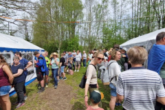 Bis auf den noch frisch aufbrühenden Kaffee war alles bereits eine halbe Stunde vor dem offiziellen Beginn startklar. Und das war auch gut so, denn die ersten Gäste trudelten nach und nach ein. Relativ schnell wurde klar, dass der Landkreis heute ein Ziel als besonders reizvoll auserkoren hat. Innerhalb einer halben Stunde füllte sich der Platz am Neuner See. Die Küchenmannschaft kam auf Betriebstemperatur und der eine oder andere konnte die ersten frisch zubereiteten Köstlichkeiten genießen. Zwischenzeitig wurden auf dem Wanderweg zum „Festplatz“ die Parkplätze für Fahrräder knapp. Die Stimmung war wie das Wetter perfekt. Dem unglaublichen Andrang war es zu verdanken, dass bereits um halb drei das letzte Essen über die Theke ging. Sicherlich wäre es schön gewesen, wenn die noch zahlreichen Anfragen hätten bedient werden können, aber genauso schön war es auch, dass der frische Fisch zu 100% verwertet werde konnte.