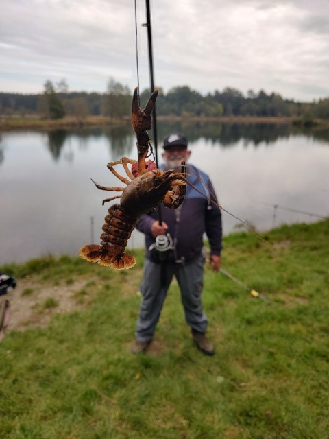 Die letzte Veranstaltung des Vereins in diesem Jahr fand am Tag Der Deutschen Einheit statt. Bei gutem Wetter versammelten sich gut 20-25 Angler und Anglerinnen am 9er See. Auffällig erscheint mir, dass bei diesen offiziellen Angelveranstaltungen vermehrt wirklich auch geangelt wird. Umso erstaunlicher war, dass der einzige echte Fang an diesem Tag ein dicker Krebs war. Es wurde zwar im Anschluss noch ein Anglerkollege in den Kescher gebracht, allerdings hatte dieser vorher nicht an einer Angel angebissen, was den Fang ungültig macht (siehe Bild).